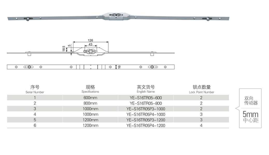 5 mm centre distance of bi-directional transmission